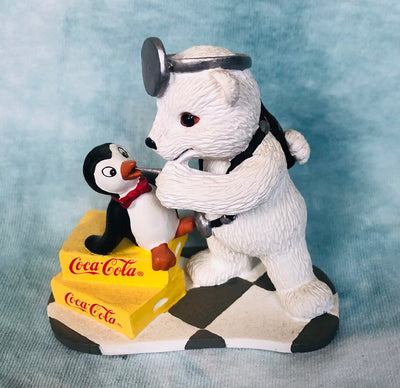 This adorable collectible figurine from the 1996 Coca Cola Polar Bear Cubs Collection is in mint condition. It's 3" tall and called Friendship Is The Best Medicine and is listed as H72049. Very rare in mint condition.