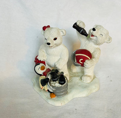 Coca Cola Polar Bear Cubs with Penguin Figurine -1998 Resin - H72054