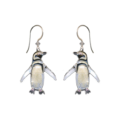 Our Magellanic Penguin Wire Earrings are finely detailed, handcrafted enamel on sterling silver plating (cloisonne). These Penguin Wire earrings make a great and unique gift for the penguin lovers who appreciate fine jewelry. Master artisans from Bamboo Jewelry create this unique design using colored granules of glass, enamel and silver. These penguins are 3/4" tall and this pair is packaged in a delightful eco-friendly bamboo gift box and lined with anti-tarnish fabric