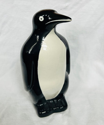 This vintage, penguin statue is stamped Made In Portugal on the base. It's hollow and hand crafted and painted. There is a horizontal crack across the back, but othere than than in excellent condition. Vintage to the 1990's