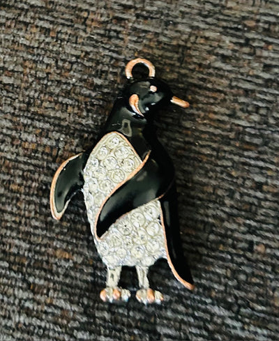 The beautiful and elegant penguin rhinestone and enamel pendant is looking for a chain and a home. It includes gold plated beak, feet and highlights. It's in excellent condition and is vintage to the 1980's.