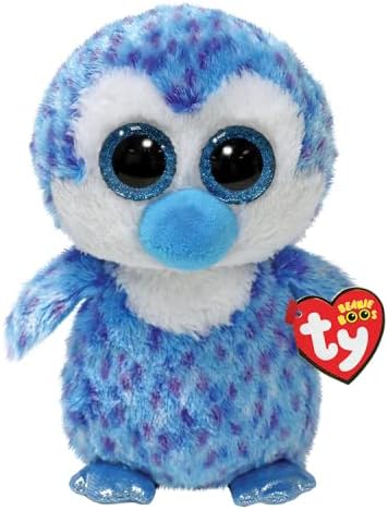 Tony is cool 6" tall plush penguin made by the Ty, with silky soft fabric, sparkly blue glitter eyes, soft fabric feet and includes a Ty heart tag and poem. Poem reads, When winter blows its icy breeze Warm me up with a cuddly squeeze.