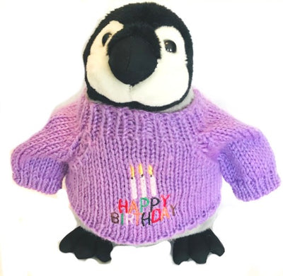 Happy Birthday King Penguin Plush with Purple Sweater (10" Tall)