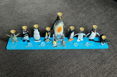 Penguin Hanukkah Menorah (12" x 2 1/2" x 4")
