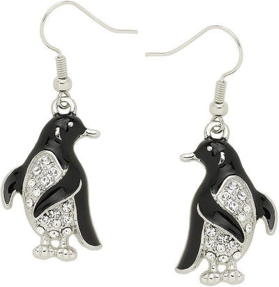 These elegant and glittering Penguin Earrings features a 2/3 inch long penguins each with a belly full of glittering rhinestones and an enamel body. The dangle penguin earrings include stainless steel ear-wires. Perfect for penguin lovers that want their ears to sparkle.