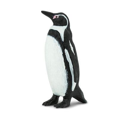 Our Humboldt penguin enjoys the beaches of South America, but would love to travel and come live with you! Created by the good folks at Wild Safari this Humboldt Penguin is hand-painted, authentic details, and affordable, and these penguin replicas stimulate creative play. Children love them for their playful poses, quality, and collectible range, as well as their educational value. A color-coded 5-language educational hang tag is included with each replica.