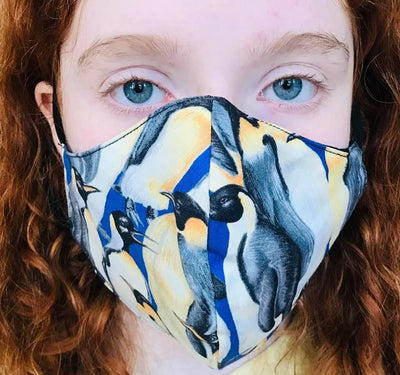 Look cool while keeping safe as you waddle around town with your unique Emperor Penguins Face Mask. Comfy, double-layered, 100% cotton on the inside layer, poly blend on the outside, eco friendly, long lasting, cool penguins design will not fade in the wash or dryer. Adult Size 7 1/2" x 4 1/2"