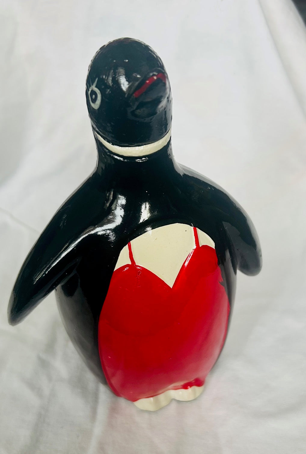 Hand Painted Penguin in Red Dress Holder (8" Tall)