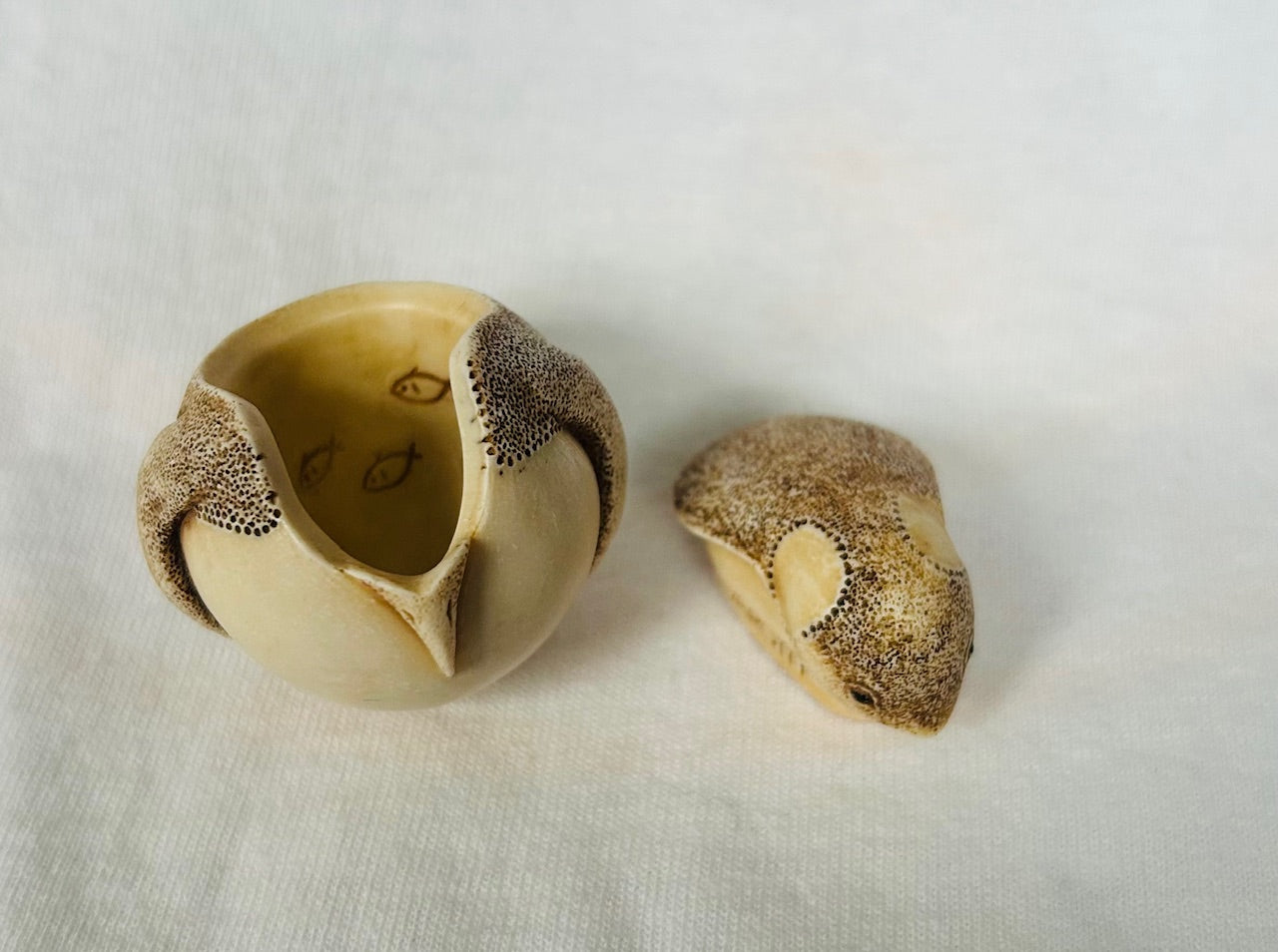 Pavorotti crushed marble figurine from Harmony KIngdom opens that the base of the head to reveal some fish.  Collectible and unique.  Vintage to 1990's and mint condition.