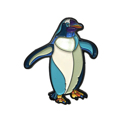 This adorable little Rockhopper Penguin pin, with brilliant enamel colors, rich metallic base with butterfly clasp on the back, is a great look on denim, jackets, suits and shirts, bags and backpacks.