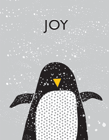 This fun penguin Christmas card is by artist Halfpenny Postage, and is printed in the USA on recycled textured paper. Comes with color-coordinated envelope. Packaged in cello jacket.