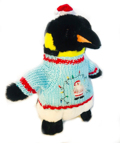 Our Santa Plush Penguin makes for a great way to celebrate the season in fun penguin style. Measuring 10" tall, this fun plush penguin is wearing a fun, colorful knit cotton pull-on sweater complete with classic Christmas lights and Santa front and center, as well as a cute little Santa hat.  The wonderful plush penguin features ultra soft stuffing and luxuriously soft, thick plush fabric. The penguin and sweater is made from all new, kid friendly non-toxic materials and meets or exceeds all US safety standards. Recommended for penguin and Santa lovers ages 3 and up.