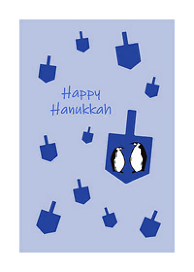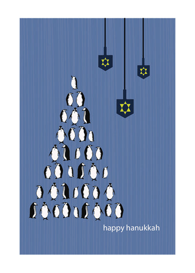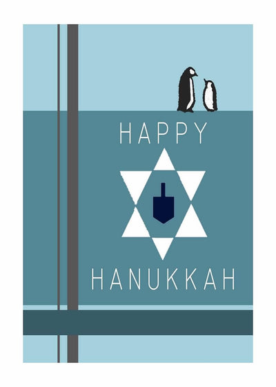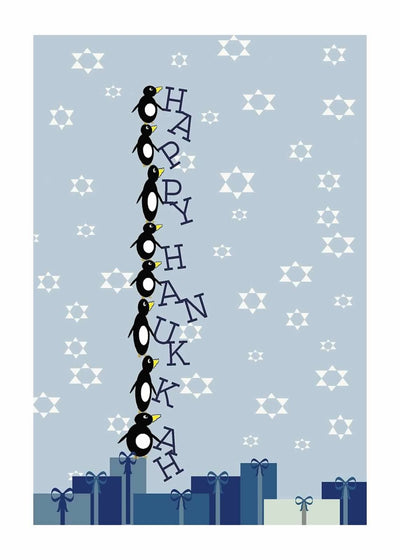 Happy Hanukkah Stacked Penguins Card (5" x 7")