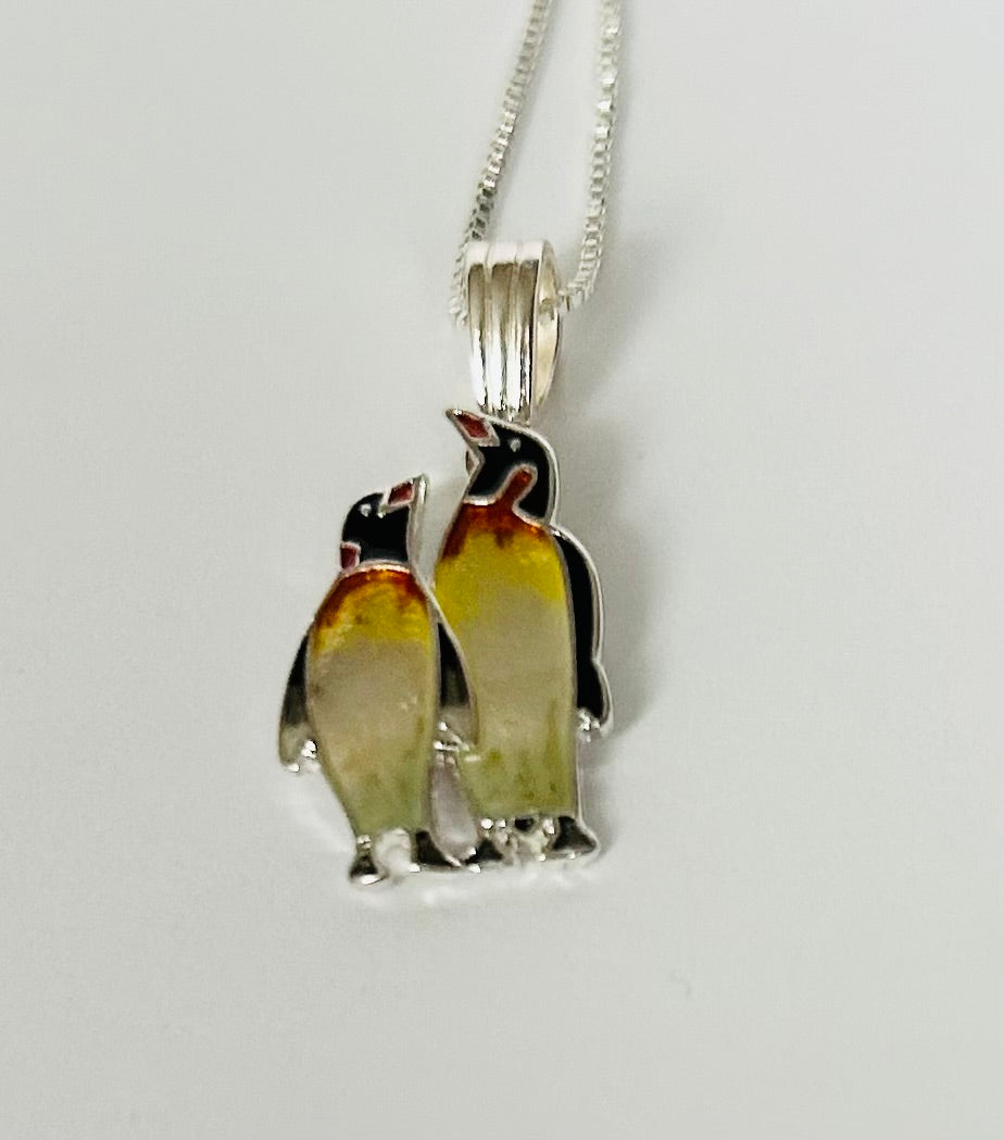 Emperor Penguin Couple Silver Plated Pendant ( 1 1/8" Tall)