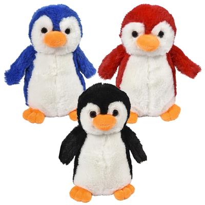 Our very cute Fuzzy Fluffy plush penguins are super soft, available in 3 colors and 8" tall. The penguin is made from all new, kid friendly materials and meets or exceeds all US safety standards. Recommended for ages 3 and up.