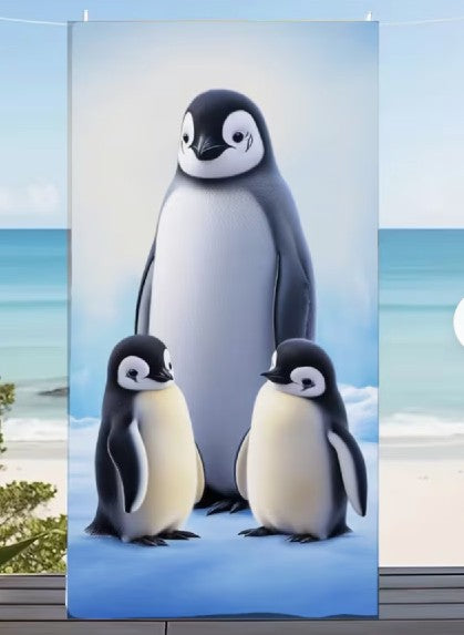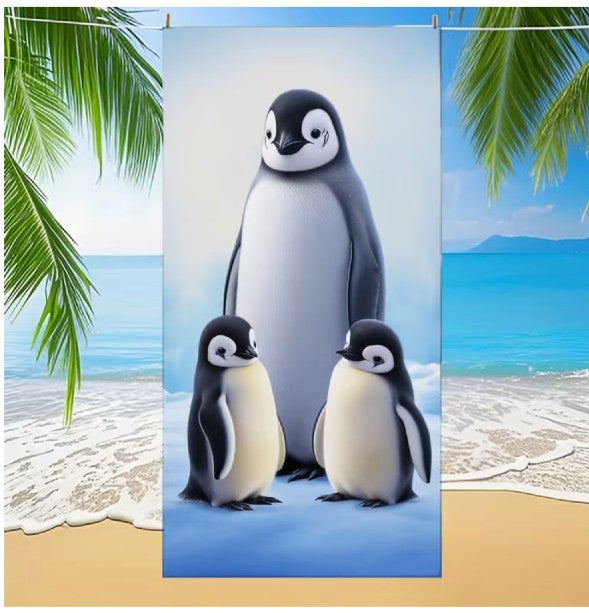 This cool and colorful Penguin Trio, ultra-soft microfiber beach towel - is a nice size 30 x 60 inch is penguin perfect for swimming, the beach & bathing. Absorbent microfiber Poly blend.