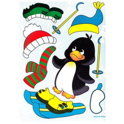 This large size dress up penguin skier sticker is cool, colorful and fun. The sticker sheet is a large size 5 1/2" x 4 1/2". Great for home, parties, school classes and events.