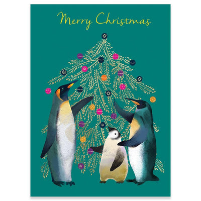 Our beautiful Penguin Family Christmas Card is by Sanja Rescek and Inside Greeting reads: Enjoy this time with friends and family. It's a nice size 4 1/2" x 6 1/4". Printed in the USA on recycled textured paper. Comes with color-coordinated envelope. Packaged in cello jacket. Features biodegradable glitter.