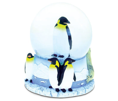 Our 65mm, 3 1/2" Tall Penguins On The Beach Snow Globe features a proud Emperor penguin in a sparkling snowstorm, and on the colorful, hand painted resin base, three more penguins and a couple of seals are hanging out on the ice. If you want to give them a little snowstorm, just shake. Colorful hand crafted resin base makes it a wonderful inside and outside the dome penguin snow globe. Makes a penguin perfect desk, shelf or windowsill friend. Comes gift boxed.